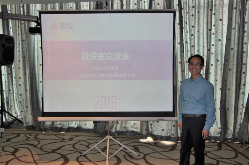 2016年4月24日下午,爱投金融集团2016年一季度投资者交流会在上海财大豪生酒店圆满举行。爱投集团总裁李志军先生、副总裁郭竞乐先生均出席了此次交流会,与广大投资者共聚一堂、共话发展。